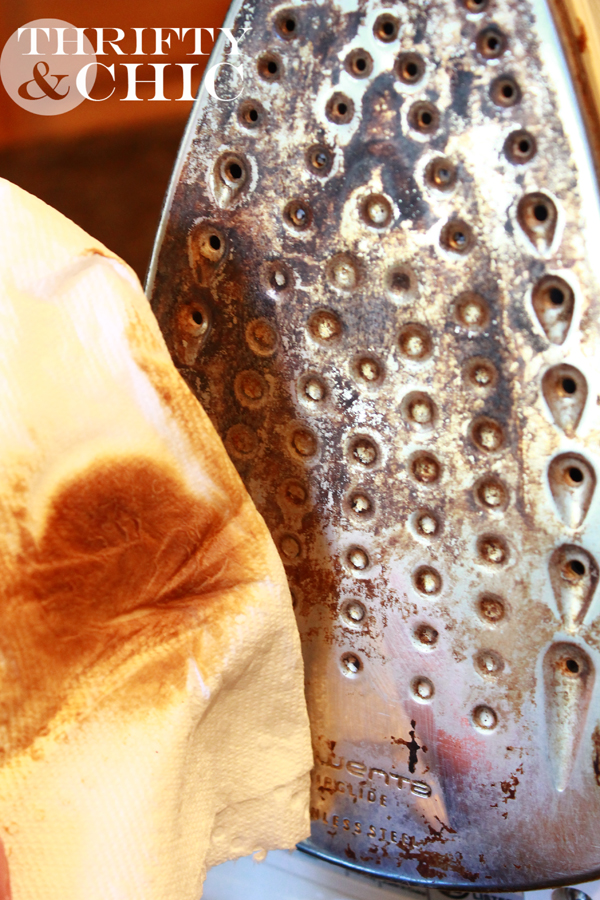 I have a dirty little secret that lives in my laundry room. It’s a secret that I hardly use…so I never really cared. But then I realized, if I hardly use it, why oh why is it such a nasty dirty little secret?? It’s my iron. And boy is it horrible. We have had it for a little over 5 years now. Maybe use it once a month, if that. The only time I usually pull it out is for decorating projects like sewing curtains or something so I don’t know why it’s so dirty. I guess all the iron on hem tape has had it’s way with it 🙂